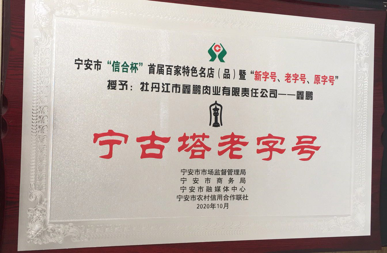 鑫鵬肉業(yè)入圍寧安市“信合杯”首屆百家特色名店稱號